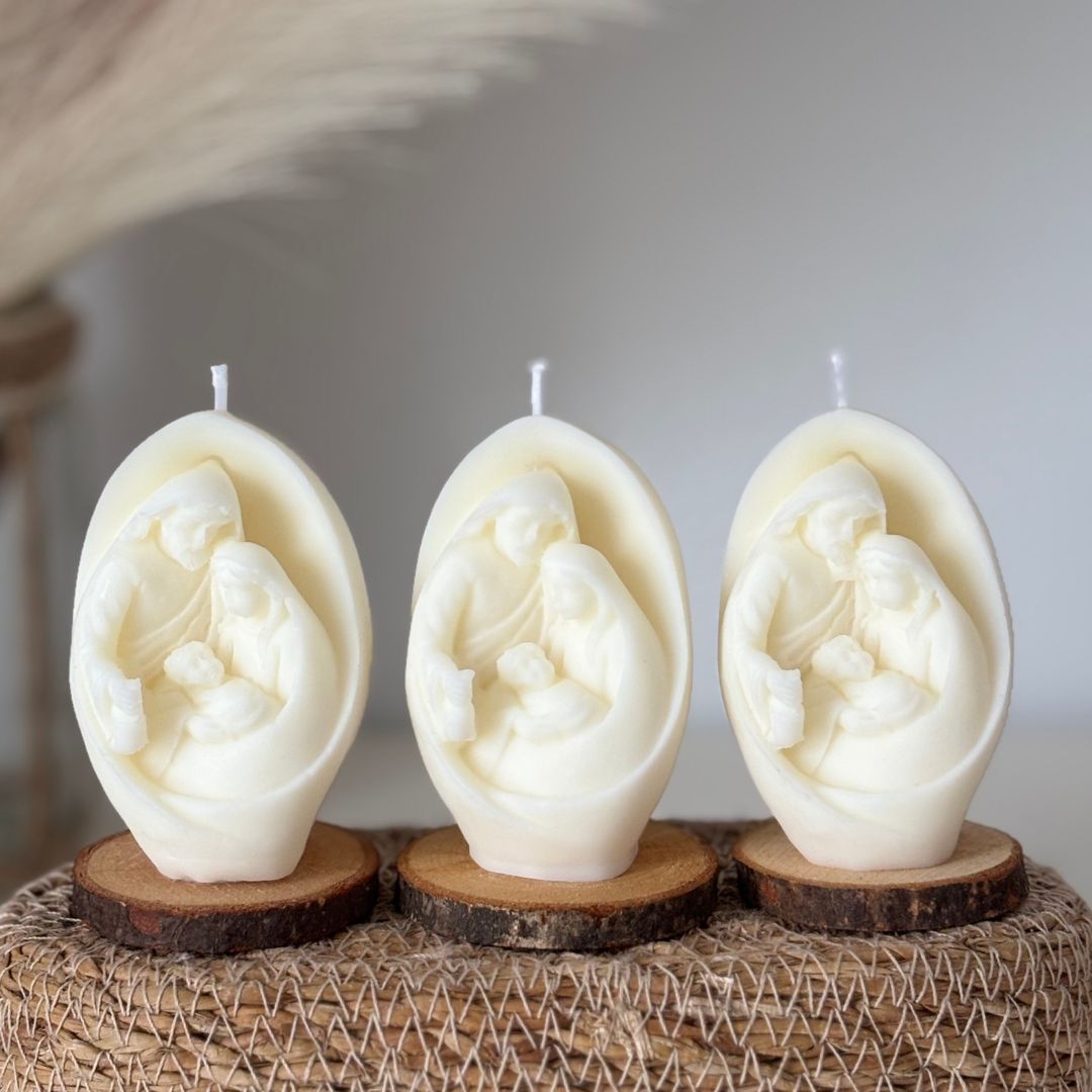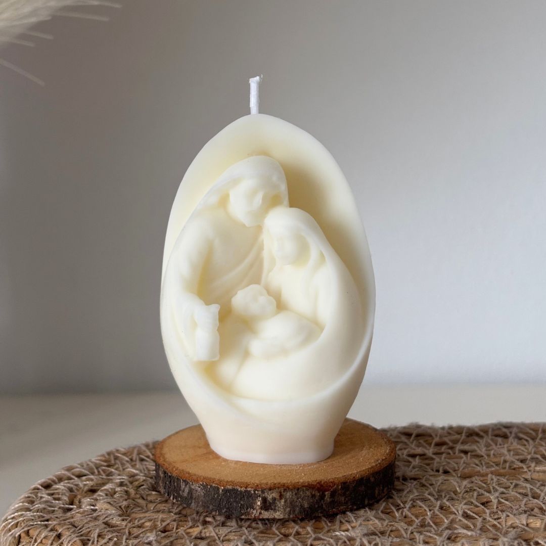 Descubre nuestra vela artesanal en forma de Belén , elaborada con cera de soja 100% natural.